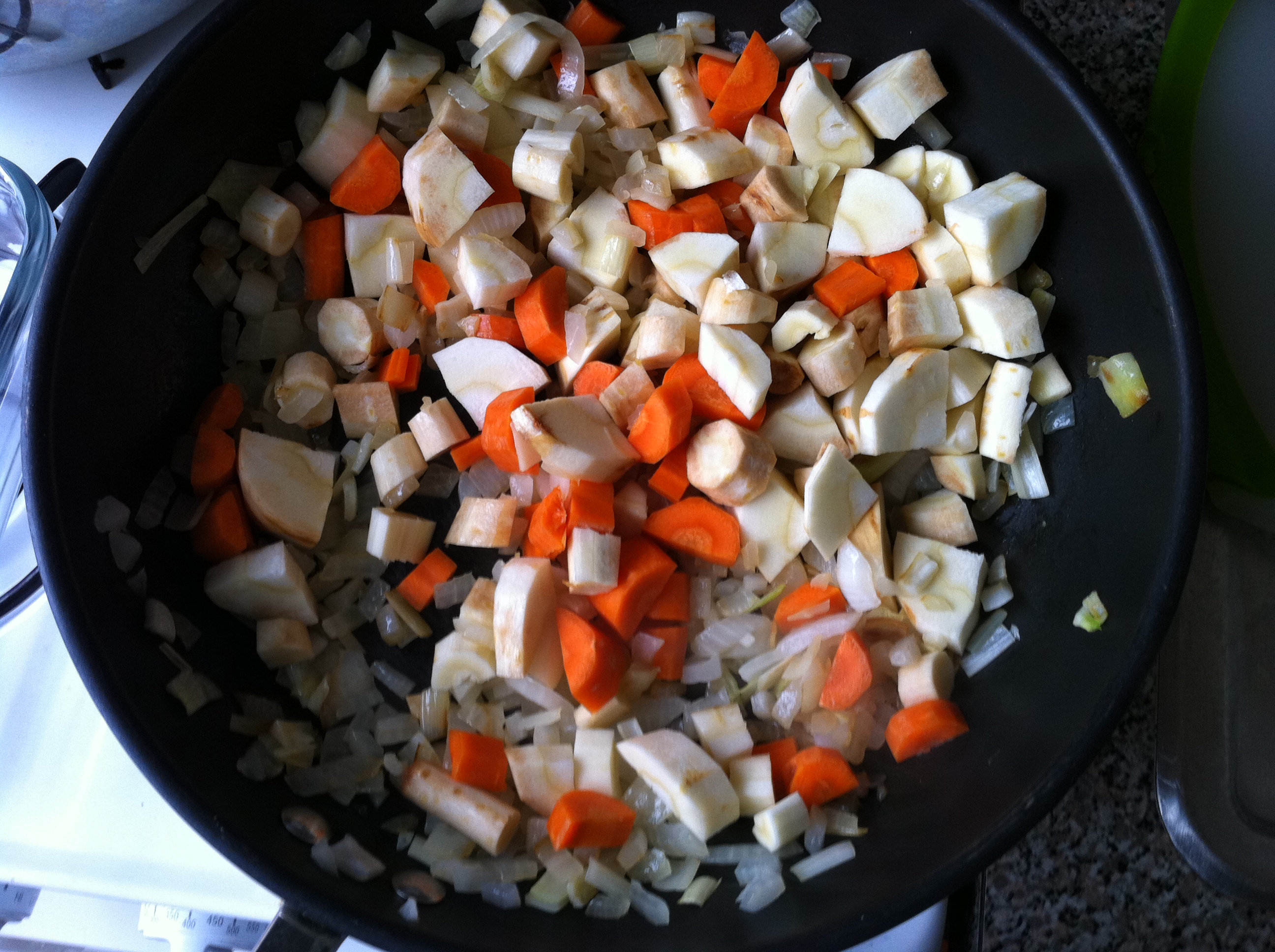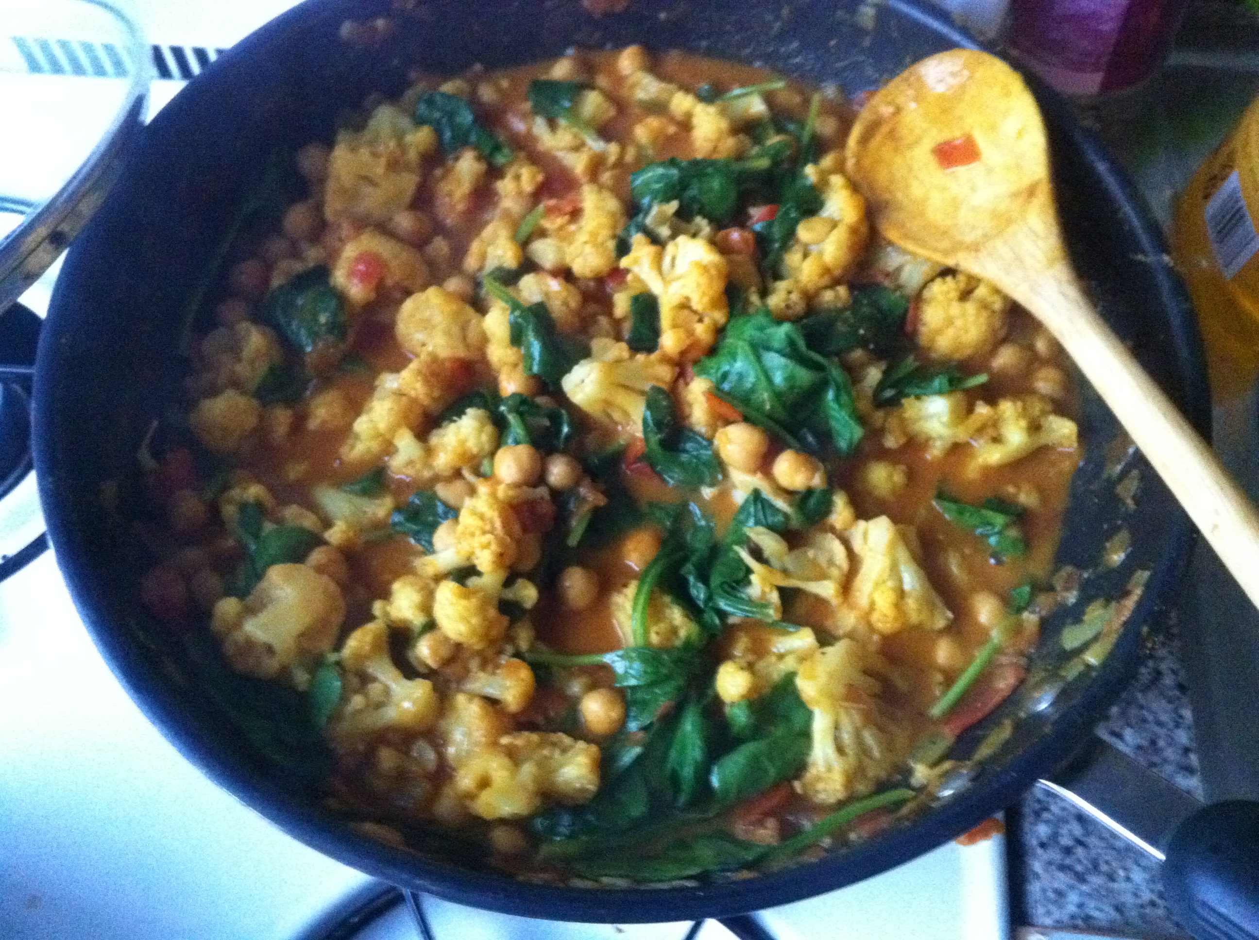 1. Heat oil in saucepan over medium heat. Add onion and celery, and cook 5 minutes, or until soft. Add cumin and garlic, and sauté 1 minute. Stir in spinach and drained tomatoes. Cook 5 minutes, or until most of liquid has evaporated.